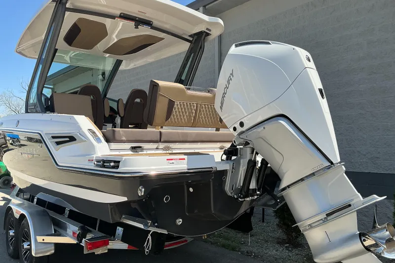 Introducing the stunning 2026 Monterey Elite 25 OB, a remarkable bowrider that perfectly blends style and performance. With an overall length of 25.58 feet, this new vessel boasts a sleek modified vee hull crafted from durable fiberglass, ensuring both stability and agility on the water. Powered by a robust 300 hp Mercury Verado outboard engine, the Elite 25 OB promises exhilarating speed and responsiveness, making it ideal for thrilling outings or leisurely cruises. The stainless steel 3-blade propeller enhances efficiency and performance, ensuring smooth navigation. Designed for comfort and enjoyment, this boat is perfect for gatherings with friends and family. Its spacious layout offers ample room for relaxation and entertainment, allowing you to create unforgettable memories on the water. The Monterey Elite 25 OB is not just a boat; it's an invitation to adventure and exploration.