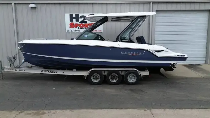 2026 Monterey Elite 27 SD, Features MERC. 6.2 350HP CAT DTS2.2 BR3 JET BLUE INTERIOR PHENDER PRO ANCHOR WINDLASS S/SS ANCHER ROPE CHAIN BOW COVER BOW SHADE AFT SEAT COVER CONSOLE COVER HELM SEAT COVER WOVEN COCKPIT FLOORING BAMBO ELECTRIC HEAD SYSTEM W/ HOLDING TANK GREY WATER SYSTEM FOR HEAD TRIM TABS LENCO
