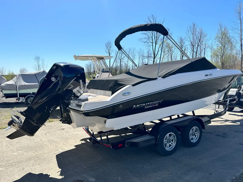 Like new 2023 Monterey M225 with Mercury 225 4-Stroke, custom EZ Loader trailer. Bimini top, cockpit Table, Depth Sounder, Ski Tow, Sea Deck flooring & swim platform, pull up cleats, stereo remote on stern. MSRP NEW IS $99K....SAVE THOUSANDS!!!