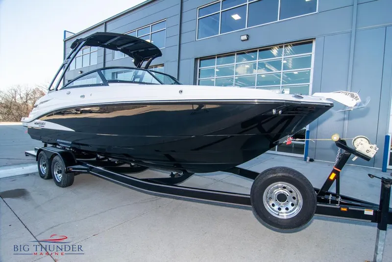 Mercury 6.L (350HP). Bravo Three Dual Prop Drive. DTS Controls. Trim Tabs w/ Indicators & Auto-Retract. Electric Windlass w/ Anchor, Rope & Chain. Wakeboard Tower. LED RGB Underwater Lighting. Grey SeaDek Swim Platform & Cockpit Inlays. Transom Shower. Removable Ski Tow Pylon. Simrad GO7 XSE GPS/Chartplotter w/ Engine Interface. Stereo Upgrade Pkg. (6.5" Rockford Fosgate M2 LED Speakers (4), 10" Punch Subwoofer & 5 Ch Amp). Transom Stereo Remote. Enclosed Head w/ Pump Out Deck Fitting. Vanity w/ Fresh Water Sink & Pullout Sprayer. Portlight. Portside Forward/Aft Facing Lounger. Electric Rear Convertible Sunpad. Phender Pro Holders. Battery Charger w/ Deck Plug. Dual Battery Switch. Bow & Cockpit Cover.