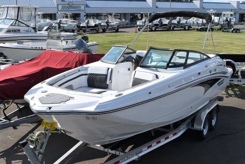 Diamond Marine of Connecticut, a Monterey Dealer. 2024 Monterey M6 Bowrider. Mercruiser 6.2L 350hp I/O, DTS, Bravo 3 drive, Artic Ice hull color, Anthracite Uphol & graphics, Black canvas, Forward shower w/ pressurized water, Ski Pylon (removable), Seadek swim platform inlay, Bow and cockpit cover, Cockpit seadek inlay Grey, Simrad GPS, Stereo upgrade (speakers, amp, subwoofer), Stern mounted stereo remote, Wetbar w/ slideout cooler, bow filler cushions, Portside Forward/aft facing Lounge, Electric Head system w/ holding tank, Battery charger w/ deck plug, Trim tabs w/ indicators. Financing available, local trades welcome. Please contact us with any questions or concerns by email or phone and ask for Mark or Karl. Thank You, Diamond Marine