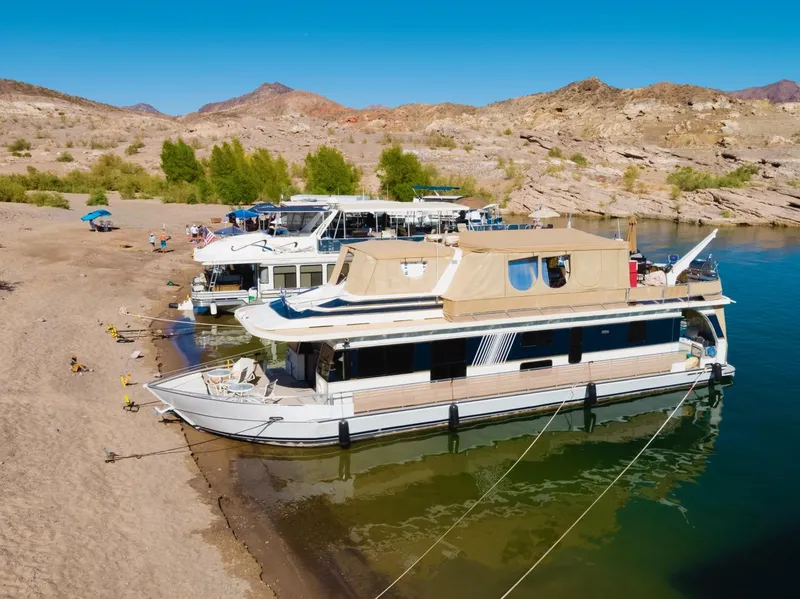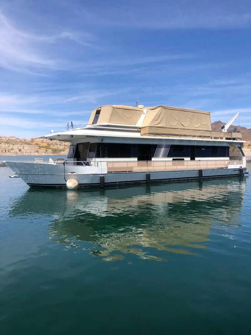 This 70' Monticello River Yacht Houseboat is like new, has 3 large state rooms, 2 heads with showers, sleeps 6, upper and lower helm stations, large Galley, plenty of room for friends and family in the dining area, the upper deck is party time,wet bar and seating for all your guests, upper helm seating and lounges, all screened in to make it your own private area, This boat is powered by twin 496 MerCruisers, With V-Drives and low hours, running a 12.5 Westerbeke for power when away from the dock, Bow Thrusters make it handle like a dream, This is the only Houseboat for the Lake Mead Waters. This Boat Is A Must See. Visit our website imageboats.com