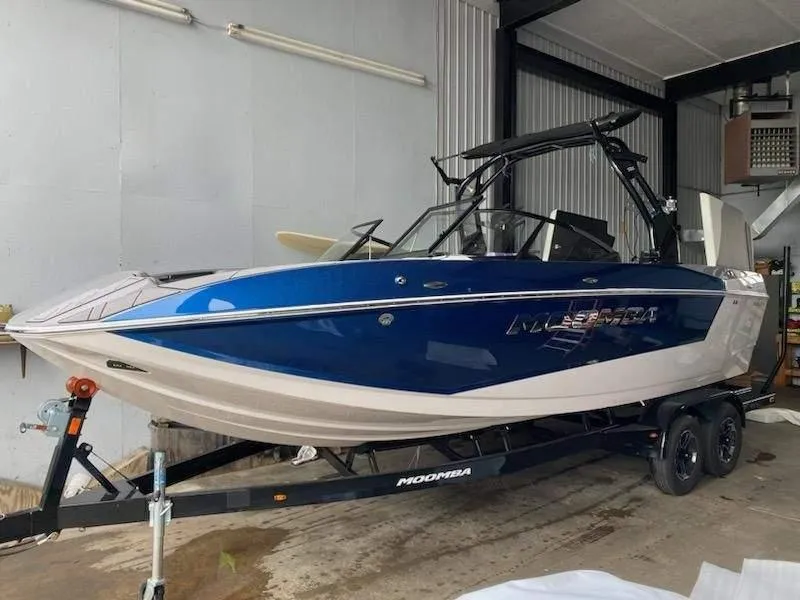 2023 Moomba 23' Mojo. Indmar 6.2 Raptor 400. 39 Hours. All fresh water use. Extended warranty transfer available for boat and motor. Surf pipe exhaust upgrade, Removable seat back, walk thru screen, Gatorstep deck kit, Pro tower, board racks with quick release swivel, full boat cover, tower bimini with board storage, Stern shade, Flow 3 surf system with upgraded 6G ballast, 2 10" tower speakers, docking lights, heater, swing tongue trailer, LED trailer back up lights, GPS mapping, stereo remote transom. $107,900.