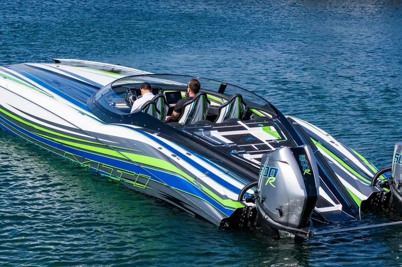 This 2022 Marine Technology Inc. (MTI) 390X is a beautifully equipped, high-performance catamaran powered by twin 2023 Mercury Racing 500R outboards with approximately 100 hours. The 100-hour service has just been completed, including new impellers, and the engines carry Mercury warranty coverage through September 20, 2026, with the option to extend coverage for an additional five years.