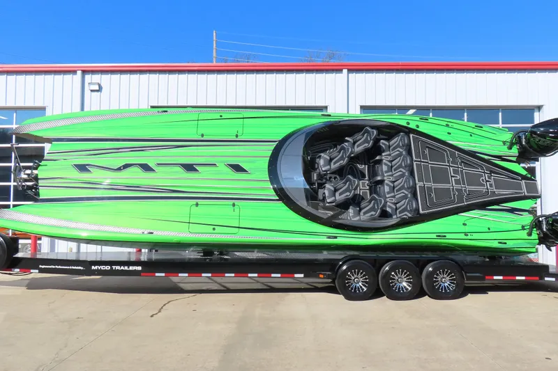 2023 MTI 390X powered by Twin Mercury Racing 450R,carbon deck, 8 person seating with flip on bolsters on all seats, Garmin GPS, Mercury Vessel view, Dash blowers, Fusion stereo with JL audio components, sea deck flooring, rear steps with sea deck, swim ladder with deck handles, billet controls, Myco Tilt trailer included!