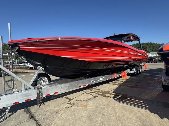 INCLUDES: Bow and stern thrusters, full engine paint, blackout package, 4 touchscreen Garmin's at the helm and 1 in the bow, Mercury vessel view, massive JL Audio sound system w/ hydraulic pop up speakers in the bow and rear wing speakers, bar w/ glass doors and bottle holders, cooler w/ chill plate, cabin A/C, dash blowers, shore power, inverter, vacu-flush head, cabin sink, carbon refrigerator, hydraulic bow table with filler cushion, LED accent lighting, LED cupholders, LED underwater lights, LED starlight headliner in cockpit, forward facing LED lightbar, Sionyx color night vision, rear facing camera, wireless chargers, windlass, wind deflector doors, dive door, swim ladder, upgraded paint, includes Evolution almn trailer, factory warranty + much more!