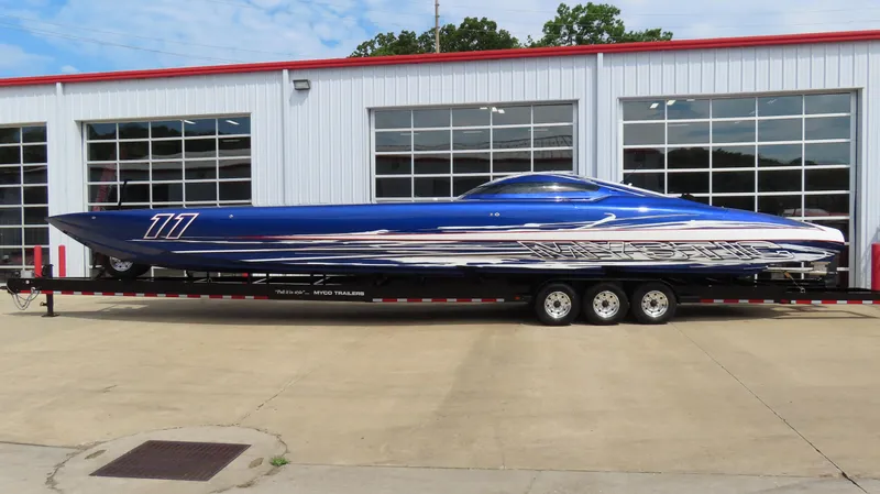 Custom Teague Tractor Pipe Exhaust, Many Teague Custom parts, All new wiring, Tri max surface drive w/ custom Latham trim cylinders, New Seadek Flooring, Latham Rudder assembly, Tunnel Tab, SCS Drop quick change gear bock mounted to mercury transmission (Multiple Gears for multiple gear Ratios), 4 Person emergency scuba system for safety, 4 Person Intercom System, Lithium Battery Powered Master-volt Inverter/Charger w/ digital display, A/C System - Sends A/C Power to a prime time water pump and a dometic water cooled Air conditioning system, Additional A/C Blowers, Fresh paint, New Alcantera Interior, 2 Gramins Displays, Mercury Zero Effort Controls, Rear veiw camera, 5-point harness system, New vessel view, New Cockpit cover, with new tractor Pipe cover, 2 Odessey Engine Batteries, 1 Odessey House Battery, All Electronic Battery Switches, Myco Triple Axle Trailer Included.