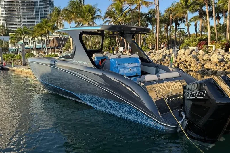 Offered for sale is a 2025 Mystic M4200 with 220 hours! Custom Performance Center Console featuring an exclusive Lamborghini-inspired custom paint combination that gives this boat a truly exotic presence on the water. Built with Mystic's legendary offshore hull design, this boat blends high-performance capability, luxury finishes, and advanced electronics.Powered by quad Mercury Racing 400R outboards, this M4200 delivers exceptional performance, reliability, and impressive offshore capability. The boat also includes a trailer, making transport and storage easy.Designed for both performance and comfort, the cockpit layout features second-row three-person bolster seating with a cooler behind the bolster, along with front bow loungers that provide a comfortable seating area for guests while underway or at anchor.This Mystic is equipped with a strong list of premium options including microwave, dive door ladder, trumpet horns, two additional rod holders, and individual covers for the center console and front seats to help protect the boat.At the helm, the boat features twin Garmin 8622 22-inch touchscreen displays, dash-mounted VHF radio, Garmin GHP 20 autopilot, XM radio, rear camera, and a Spot GPS tracker.The boat also features a Platinum Fusion stereo system, delivering an incredible sound experience with 8 overhead speakers, 8 cockpit speakers, 2 additional speakers in the gunnels, 6 subwoofers, and 4 amplifiers-an absolute top-tier marine audio system.Lighting upgrades include a full lighting package with 4 RGB underwater lights and engine cowl lighting, LED remote spotlight controlled from the helm, and an LED spreader light mounted on the aft hardtop. The finishing touch is the black-painted VHF and radio antennas, complementing the boat's custom paint scheme.This 2025 Mystic M4200 represents a rare opportunity to own a custom-built, high-performance center console with exotic styling, quad outboard power, premium electronics, and luxury features.Key Features• Exclusive Lamborghini-inspired custom paint combination• Quad Mercury Racing 400R outboards• Trailer included• Second-row three-person bolster seating with cooler• Front bow loungers• Microwave• Dive door ladder• Trumpet horns• Two rod holders• Individual covers for center console and front seatsElectronics• Twin Garmin 8622 - 22" touchscreen displays• Garmin GHP 20 Autopilot• Dash-mounted VHF radio with antenna• XM Radio• Rear camera• Spot GPS TrackerAudio & Lighting• Platinum Fusion stereo system• 8 overhead speakers• 8 cockpit speakers + 2 gunnel speakers• 6 subwoofers• 4 amplifiers• RGB underwater lights with engine cowl lighting• LED remote spotlight (helm controlled)• LED spreader light on hardtop--