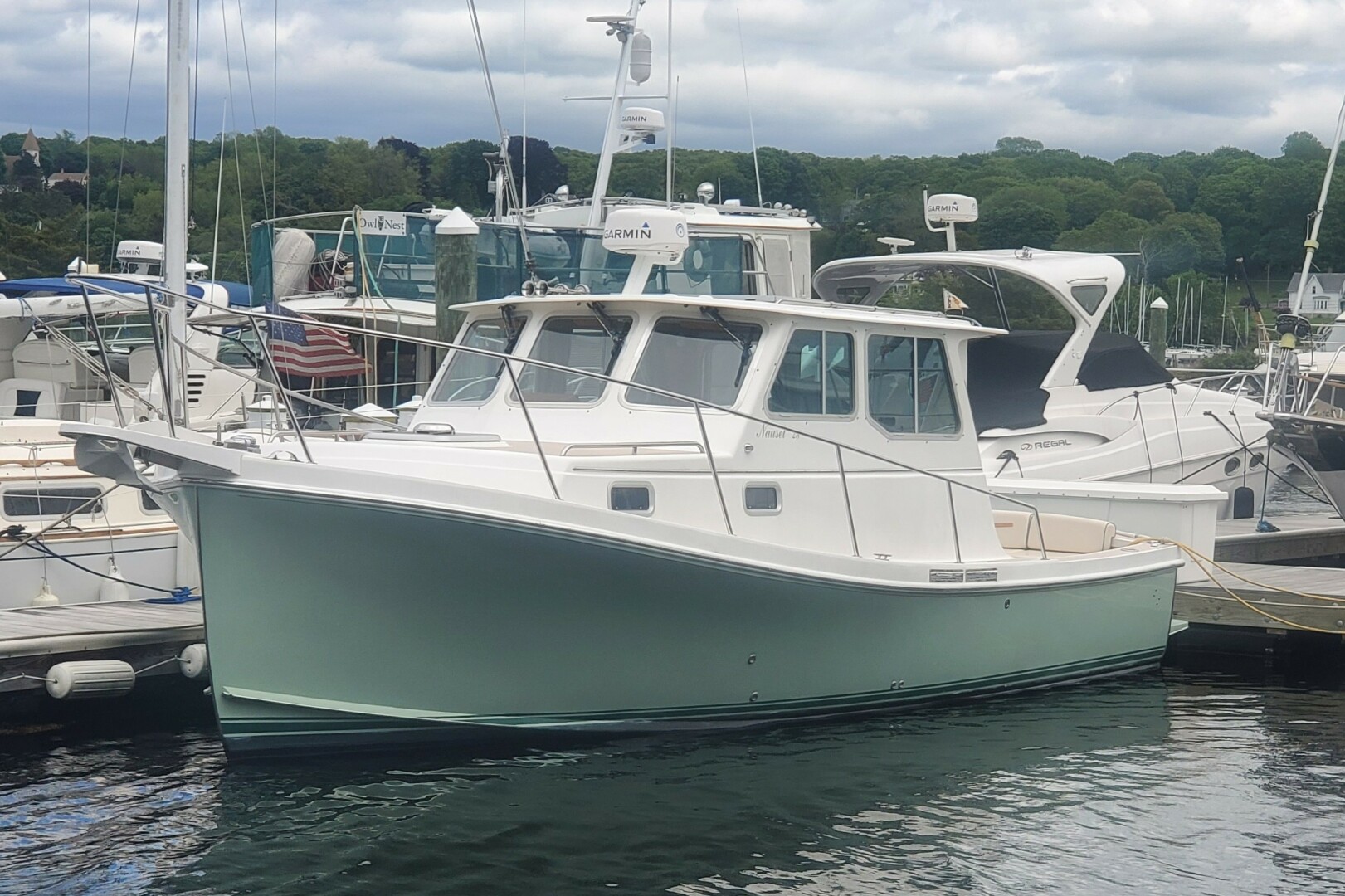 Lucy is a 2009 Nauset 28 Hardtop. Her classic New England design and exceptional build quality, really stands out in the current market. Her size makes her a unique and desirable find. Personally, this is the kind of boat I would be happy to own myself. She is an excellent option for anyone seeking that timeless Downeast aesthetic in a boat that's easy to manage, requires minimal upkeep, and offers something distinct from the more common offerings in this size range. It's worth noting that Lucy was featured as Nauset Marine's Boat Show boat and was subsequently sold to her original owner in 2012. Importantly, the original engine was upgraded with a 2011 Yanmar 315hp diesel engine (474hrs May 2025). Furthermore, she is well-equipped with features such as a Sea Shell Green Awlgrip hull, a bow thruster for easy maneuvering, air conditioning and heat for comfort, updated Garmin electronics installed in 2021, and new batteries from 2024. The inclusion of aft cockpit seating and a table, along with a convenient shade system for sunny days, further enhances her appeal.