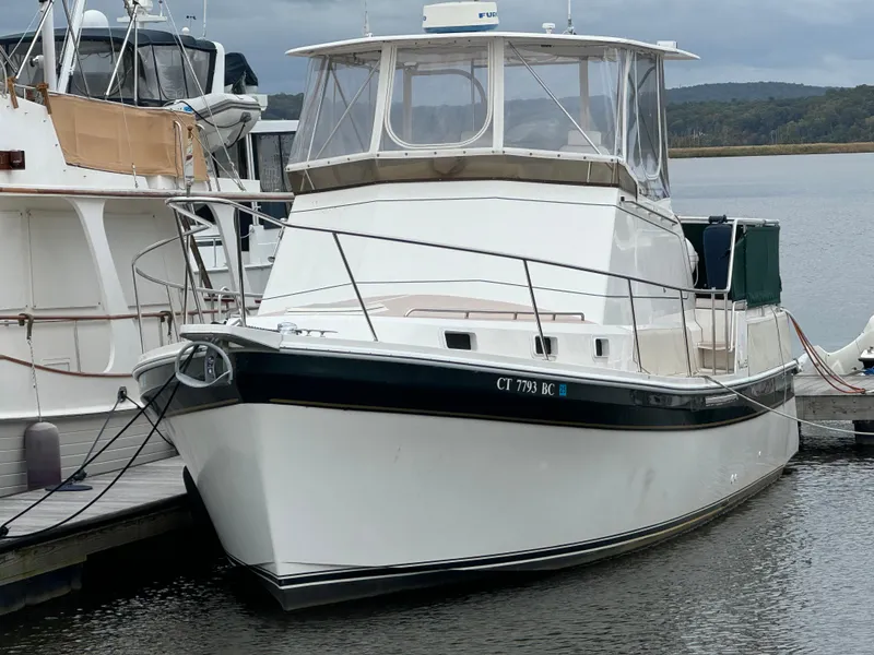 Customers reviewing the 2004 Nauset 33 BRIDGE DECK consistently praise its robust construction and classic design, highlighting the vessel's solid fiberglass hull and traditional lines that offer both durability and timeless appeal