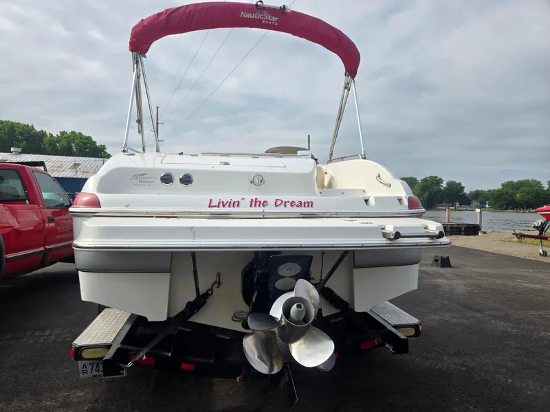 2005 NauticStar 210 Sport Deck I/O, a remarkable deck boat that perfectly blends style and functionality. With an overall length of 21 feet, this vessel is designed for both leisure and adventure, accommodating up to 10 passengers comfortably. Additional features: a mooring cover, docking lights, bow & stern ladders along with an extended swim platform, snap in carpet, sink & pump faucet, table, hilt wheel, in floor ski locker, stereo and speakers, digital depth finder and Lowrance GPS. The sleek fiberglass hull ensures durability and a smooth ride on the water. Powered by a reliable 2005 MerCruiser 5.0L Bravo 3 inboard/outboard engine, this boat features a dual stainless steel 3-blade propeller, delivering impressive performance for all your water activities. With only 437 hours of use, it promises many more memorable outings. Whether you're cruising with friends or enjoying a day of water sports, the NauticStar 210 Sport Deck I/O is equipped to enhance your experience. Embrace the adventure with "Livin' the Dream"! Included with this vessel is a Marine Master tandem axle trailer with guide-ons and a spare tire. This boat is on consignment at Spellman's Marina in Oshkosh, Wisconsin.