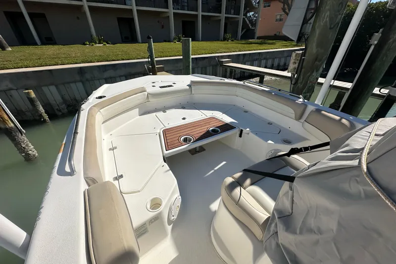 A serious fishing machine in the morning and a versatile water sports boat later in the afternoon, the 211 Angler is the right boat for you. The 211 is loaded with fishability features including, gunnel rod holders, a 27 gallon aerated release well, a 13 gallon aerated baitwell, cast net storage and fore and aft casting decks. Flip-up 3-across seating, a standard Bimini top and leather touch upholstery adds to the comfort. You can even option in the large console with head compartment to make it that much more comfortable for a day on the water.