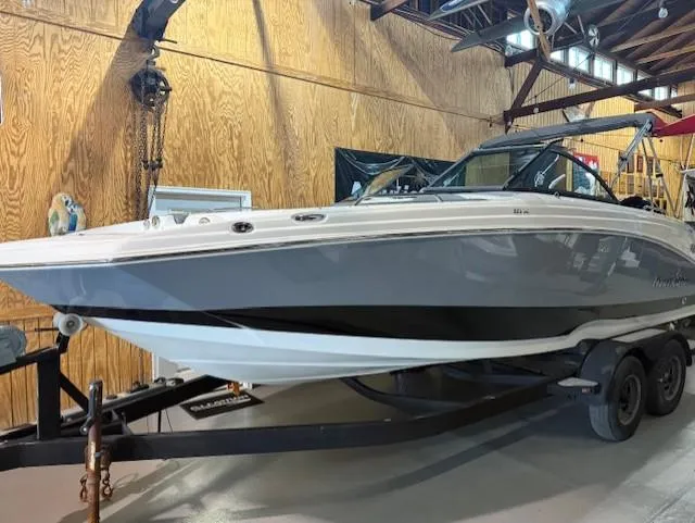 BRAND NEW LEFTOVER that is PRICED to SELL! Slate Gray w/Black Accent, powered with a Mercury 150 XL. Other key features include: Bimini Top, Bow & Cockpit Covers, Freshwater System, Simrad 5" GPS, Bow Fill Cushions, Snap-in Flooring, Pump Out Porta Pottie & Ski Pole. Note Trailer in pictures not included.