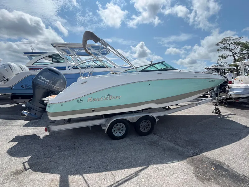 This is a super clean NauticStar 243 DC and it is powered by a 200 Yamaha 4-Stroke with only 286 hours on it! It has been kept with a Bow and Cockpit cover on it and in a high and Dry its whole life. One owner boat. This boat does have a Live well in it which makes it very versatile, great for cruising and gives the ability to go fishing as well. All the upholstery in the boat is in perfect condition. The gel coat all over the boat is in very nice condition. It is loaded with nice options including a Toilet w/ Overboard Discharge, Bimini Top, Bow & Cockpit Cover, Live well, Cooler, Ski Tow Bar, Snap in Flooring, Freshwater Shower, & Simrad Screen.