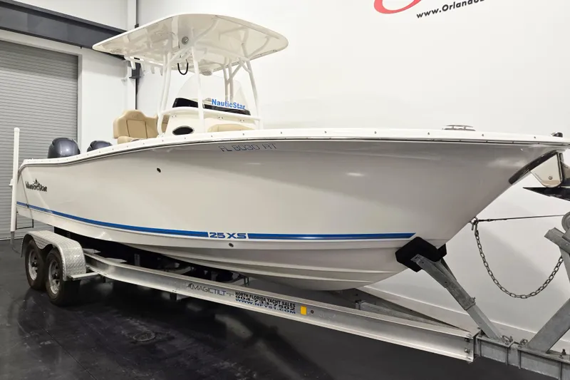 2018NauticStar25XS with only 175 hours. This boat has been very well maintained with all the right upgrades, priced to sell. Will not last long! Twin Yamaha 150hp outboards, 9" SimRad, VHF radio, upgraded Infinity stereo system, Hardtop, two live wells, rear aft folding seat, rod holders, Stainless props, trim tabs, bow backrest and cushions, Head compartment with gravity flush head, Windlass anchor, dual battery switch, Full 4‑piece canvas cover and stand alone cockpit cover, Sea Dek throughout, stainless ladder, Dual‑axle Magic Tilt trailer.