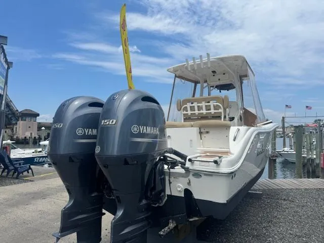 Head out to the deep waters in style and comfort in the 2602 Legacy. This beauty is loaded with standard features that exceed expectations for quality, performance, and versatility. Its roomy cockpit features plush seating with a flip-out backrest in the bow and three-across aft seating that conceals an 18-gallon cooler and an oversized insulated 50-gallon fish box. The large head comes complete with a sink, mirror, and SeaDek® flooring. The leaning post is the epitome of efficiency with beautifully styled, ergonomically-correct seating with flip-up bolsters; a large, 21-gallon baitwell, a switch panel, and a conveniently-located freshwater washdown.