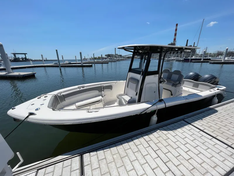 - A spacious head compartment equipped with a sink, mirror, and durable SeaDek® flooring, adding a touch of luxury to your outings.