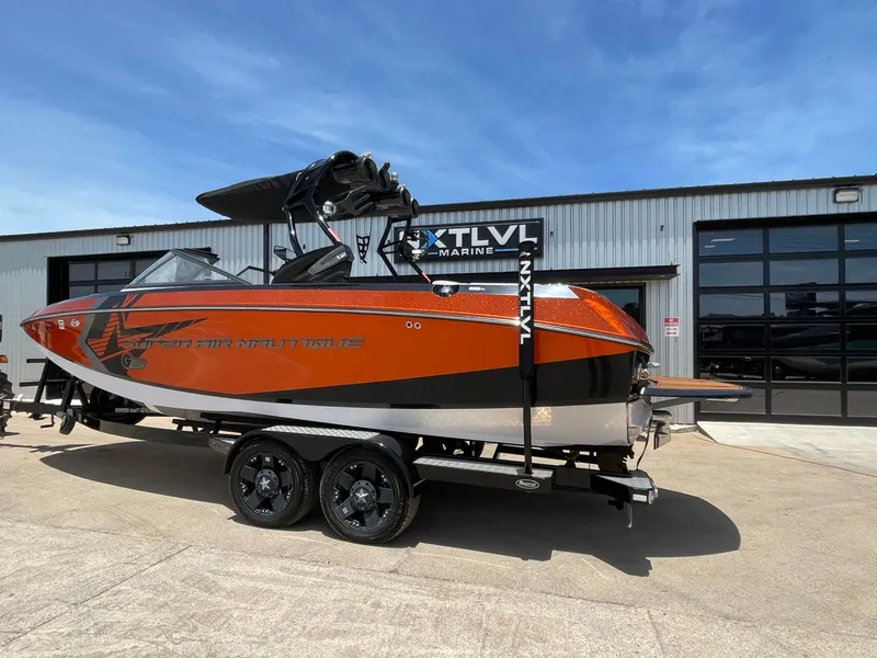 This 2015 Super Air Nautique G23 sport Nautique's Crush Orange Metallic flake that makes it this G23 shines on the water! Powered with the upgrades ZR450 PCM engine gives it plenty of power when cruising the lake or pulling riders behind the boat. Engineered with riders in mind this boat creates some of the best wakes and waves for its era with its unique hull designed and Nautique Surf System. This 2015 Nautique G23 is equipped with a lengthy list of factory & aftermarket options Highlighted Options: