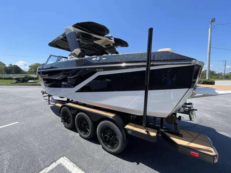 2026 Nautique G23, 2026 Nautique G23 Experience the unparalleled luxury and performance of our 2026 Nautique G23 . The G23 has been designed with the most innovative technology and unparalleled craftsmanship, making it the ultimate in water sports luxury. Versatility and Performance: The Nautique G23 effortlessly combines versatility and performance. No matter whether your preference is wakeboarding, water skiing, or surfing, the G23's industry-leading surf system provides perfectly sculpted waves and wakes. With its high-tech hull design, this boat maximizes comfort and stability, even at high speeds. Ample Space: Comfortably accommodating up to 16 people, the G23 offers plenty of space for friends and family. Its intelligently designed seating area allows for an abundance of storage room for all your watersports gear. Sophisticated Features: No detail has been overlooked in the G23. The helm features a modern, easy-to-use dashboard with touchscreen controls, creating a user-friendly experience. Exceptional on-board amenities include a premium sound system, built-in coolers, adjustable rear-view mirrors and customizable LED lighting to set the mood for any outing. The 2026 Nautique G23 is not just a boat; it's an adventure beyond compare. Step aboard, discover its beautiful details and powerful features, and see for yourself why it's the pinnacle of watersports luxury.