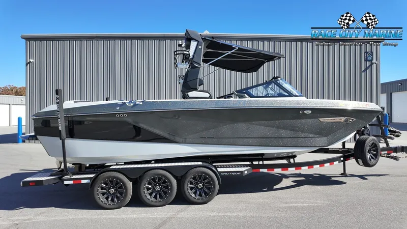 2022 Nautique G25, Features SUPER AIR NAUTIQUE G25 LEGENDARY LINEAGE The G25 embodies the legendary lineage of the award-winning G-Series as a performance-driven model that can accommodate larger groups of family and friends. With the best hull in the industry, the G25 delivers pro-level wakes and waves while also catering to beginners, ensuring an unforgettable riding experience for everyone onboard. In addition to this unparalleled performance, the interior incorporates luxurious touches and innovative features that can be customized to your preferences for premium fit and finish that is sure to leave a lasting impression. Package Type Super Air Nautique G25 Engine Type: 226 450HP - 6.2L Direct Injection LINC Panoray Navionics Map: NO MAP NMMA Grow Boating Surcharge WSIA Waterways Preservation Fund Standard Tower Shock Size: 3000N Bimini -Tower Mounted Tri-Fold with Surf Pockets Tower Prep Kit JL Audio M Series Studio(Pre-Wired 8 Channel Amp) Tower Speakers - 1 Pair JL Audio M6 Series 880x Series Speakers Tower Speakers - 1 Pair JL Audio M6 Series 880x Speaker Covers Ballast - Supplemental Sub-Floor Midship Battery Maintenance System 11O (Integrated Charger-Dual Battery) Heater with Defroster Ladder - Platform Access Enhanced Courtesy Lighting Package Lights - Underwater Nautique Integrated Steering Assist Phender Pro - Boat Fender Attachment System (6) Stereo - JL Audio M6 Series Studio Elite (Wavefront) Walk-Thru Air-Dam (Slide In) Super Air Nautique Chromax w/G-Series Logo: Gold Chrome Finish with Illusion Frost Interior Deck Color: HAZE GREY Main Stripe Color: ANTHRACITE METAL FLAKE Hull Rear Color: JET BLACK Hull Bottom Color: HAZE GREY FCT-A Color Primary: JET BLACK FCT-A Color Secondary: JET BLACK Platform Color: JET BLACK Primary Interior Color: HAZE GREY Main Stripe Color: JET BLACK SOFTMAX Accent Piping Color: JET BLACK SOFTMAX Seat Boxing Color: JET BLACK CETACEA Featured Texture Color: JET BLACK SOFTMAX Non-Skid Color: TITANIUM GREY Thread Color: BLACK Interior Chromax Color: Gold Chrome Finish with Illusion Frost Standard Options Prop Acme PN 3433 Enhanced Courtesy Lighting Package (Customized Colors on Illuminated Cupholders, Courtesy Lights and Interior Chromax Badging) (Includes WaveFront, Dual Subwoofers, Monoblock Subwoofer Amp) Flight Control Tower (Textured Finish) with Nautique Awareness Camera **********Standard Items Listed Below********** Nautique Surf System with WAVEPLATE, Wake Package(lntegrated Ballast 2200 lbs) Nautique Configurable Running Surface with Hydro-Plate Nautique LINC PANORAY with Helm Control, Zero Off GPS Speed Control Surf Pipe Exhaust, Power Management Access with Dual AGM Batteries Navigation and Docking Light Array, LED Courtesy Lights Sliding Reversible Stern Seat & Flip-Up Lounge Seat (Port) Rear Facing Transom Seating, Wireless Charging, Freshwater Engine Flush System Rotating Wakeboard/Wakesurf Racks Cleats (4), Coolers 2 (Removable), Waste Receptacle GoPro Ready Rotating Tow Point, MyNautiqueTM Connectivity Platform Cover - Platform -Towable/Mooring(Tower Up)with Anti-Pooling System Fire Extinguisher -Automatic Stereo - JL Audio M6 Series Studio Elite with Wavefront