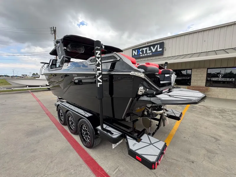 Customizable Features: The boat comes with a variety of customizable options, including ballast systems and surf tabs, allowing riders to tailor the wake to their preferences.