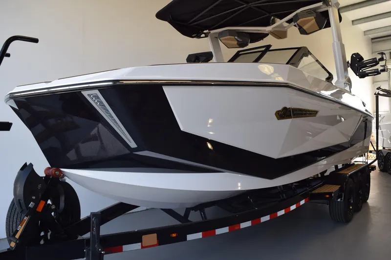 Introducing the 2026 Nautique Super Air Nautique G25 Paragon, a remarkable ski and wakeboard boat that embodies innovation and performance. With an impressive overall length of 25 feet, this new vessel features a sleek fiberglass hull designed in a modified Vee shape, ensuring stability and agility on the water. Powered by dual PCM ZZ8S engines, each delivering a robust 630 horsepower, this boat promises exhilarating speed and responsiveness, making it perfect for thrilling water sports. The advanced supercharged and direct injection technology enhances fuel efficiency while maximizing power. Designed for adventure, the G25 Paragon offers a spacious layout that caters to both comfort and functionality. Whether you're carving through waves or enjoying a leisurely cruise, this boat is equipped to elevate your experience on the water. Embrace the excitement and luxury of the Nautique Super Air Nautique G25 Paragon, where every outing becomes an unforgettable journey.