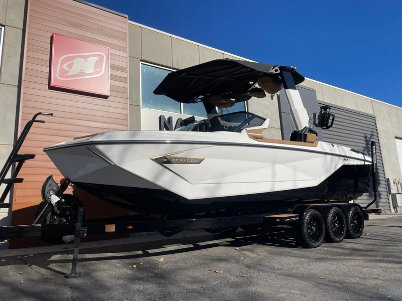 CHECK OUT THIS CLEAN 2023 NAUTIQUE G25 PARAGON. NICLEY LOADED FOR A GREAT DAY/WEEK ON THE WATER. SOME OF THE AWESOME OPTIONS ARE THE- STEERING ASSIST TRANSOM THRUSTER, SUPPLEMENTAL BALLAST, WAKE SUBS, LIQUID LUMENS UNDERWATER LIGHTS, SWIM PLATFORM LIGHTING, TRANSOM WALKTHRU LIGHTING, HEATED DRIVER AND PASSANGER SEATS, HEATER, BOW FILLER CUSHION, SURF SELECT, GPS MAPPING, BATTERY CHARGER, TINTED WINDOWS, CERAMIC COATED AND MORE. ALL OF THIS BEING PUSHED ACROSS THE WATER BY THE PCM ZZ8 600HP POWER PLANT WITH ONLY 153 HOURS. THE TRIPLE AXLE BOATMATE TRAILER IS LOADED AS WELL WITH CUSTOM 18" TIRE/WHEEL PACKAGE WITH MATCHING SPARE, BOW LADDER, TRANSOM RATCHETS AND MORE. MUST SEE TO APPRECIATE.