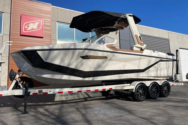 Check out this clean one owner 2025 Nautique G25 Paragon! Nicely loaded for a great day/week on the water. Some of the awesome options are the Telescoping Tower, Quad Tower Speakers, Transom Thruster, Upgraded WaveFront Stereo, Wake Subs, XM Satellite Radio, Heater, Heated Seats, Pocket Air Dam Door, Bow Filler Cushion, Two Set of Pillows, Bow Arm Rests, UnderWater Lights, Wireless Charging, GPS Mapping, Phender Pro, Power Helm Seat, Surf Select, Automatic Fire Extinguisher and more. All of this being pushed across the water by the PCM ZZ8S 630HP SuperCharged Power Plant with only 59 Hours.