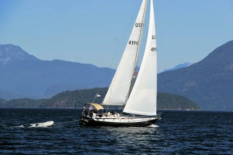 The boats hailing port is Portland, Oregon because that is where we lived and worked, but the boat has never been outside Northwest inland waters with the exception of one cruise to Barkley Sound. During its time in Olympia, the boat was used solely for weekend cruising of the South Sound or once-a-year cruises to the San Juans, Gulf Islands, and Desolation Sound. On one occasion during a sabbatical break, the boat was sailed as far north as Port Hardy. The boat has never been raced during my ownership.