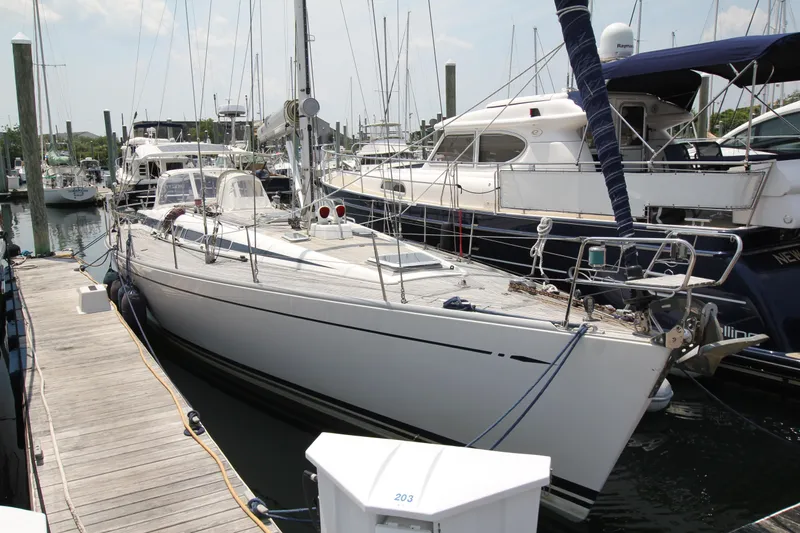 Yeoman Yachts is quite familiar with MAX having sold her a few times in the past. MAX has the original white gel coat on her hull, and it still shines like new when waxed and buffed. MAX has the highly sought after Leisurefurl in-boom furling system and together with a powerful autopilot and electric primary winches, she is a breeze to sail shorthanded.