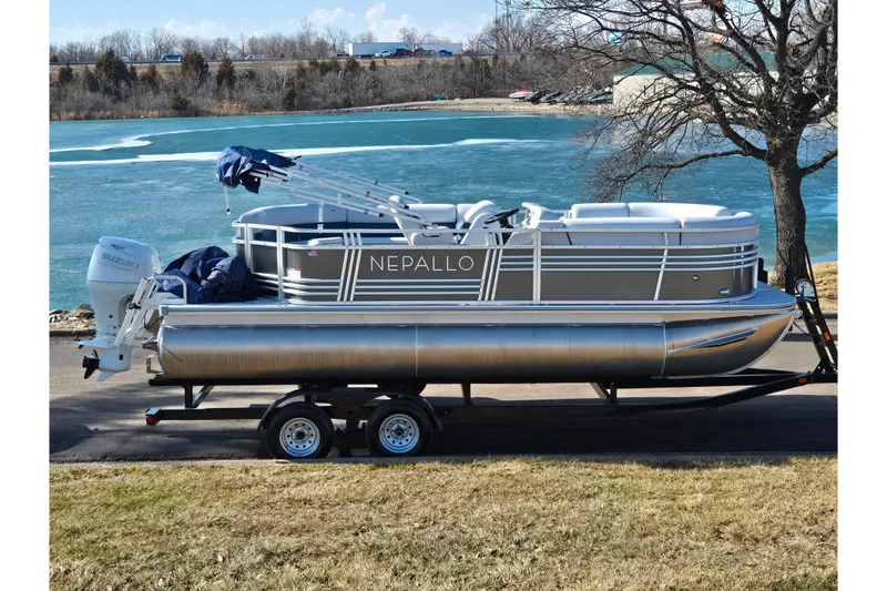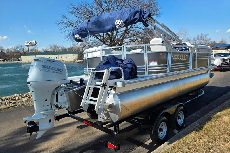 VERY NICE Nepallo 18TL comes with: 90 hp Suzuki DF with ONLY 4 minutes total time of use, swim platform w/ fold-down ladder, tilt wheel, Stereo/BT, Custom cover, Bimini Top, Diamond Stitching throughout, trailer, and more. This unit is Literally Like New!