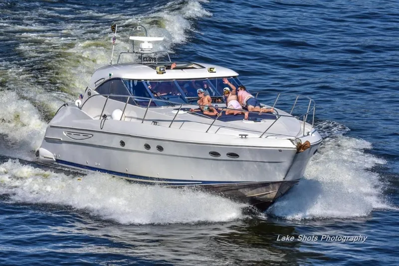 Deck/Hull: Anchor, dock power, compass, spotlight, windshield wipers, shore water, wet bar, sunpad, swimplatform, hardtop, large steps to foredeck, sea dek and new flooring throughout cockpit and cabin.
