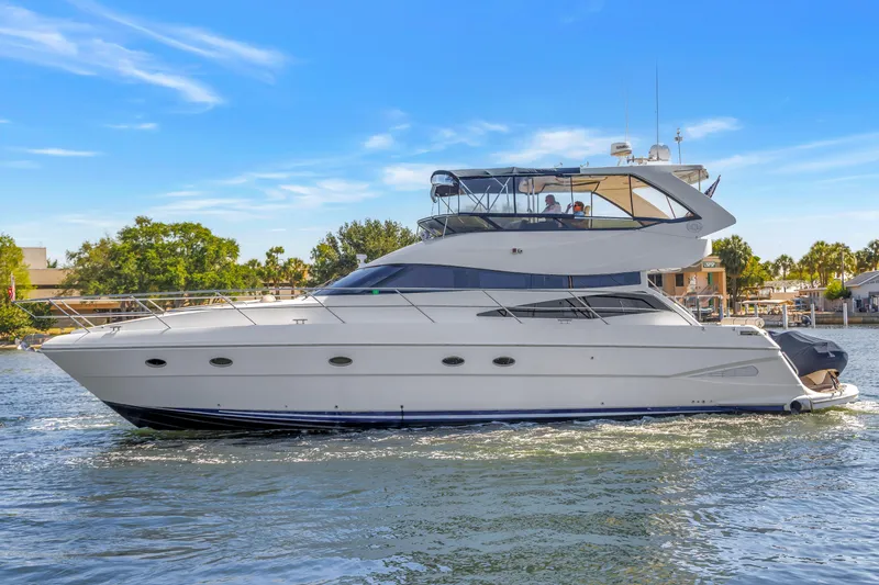 Introducing Parlay this 2001 Neptunus 56 Flybridge, is a stunning motor yacht that embodies luxury and performance. With an overall length of 56 feet, this vessel boasts a sleek fiberglass hull designed in a Deep Vee shape, ensuring exceptional stability and handling on the water. Powered by twin CAT 3406E inboard engines, each delivering an impressive 800 horsepower, parlay glides effortlessly at a cruising speed of 20 mph, reaching a maximum hull speed of 28 mph. With only 2300 hours of use, these engines promise reliability for many more adventures ahead. The yacht features two heads, enhancing comfort for guests and crew alike. Designed for those who appreciate elegance and functionality, Parlay is perfect for both leisurely cruising and entertaining. Experience the allure of the open sea with this remarkable motor yacht, where every journey becomes a memorable escape.