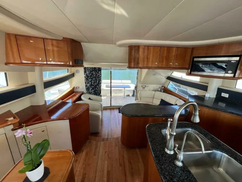 Maneuverability: While generally manageable, the boat's size and flybridge height might require some experience for docking and handling in tight spaces.