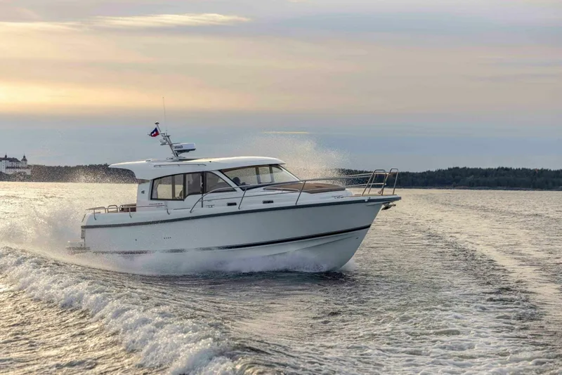 The Nimbus Boats 365 Coupe was designed specifically to provide as many spaces on board for entertainment, socializing, and fun as possible, while also maintaining the high standards that come with being a Nimbus. The 365 Coupe was so well-built in fact that it won the European Powerboat of the Year award for its class, a nod to the thoughtfulness that went into designing and building the boat in a way that appeals to boaters needing a multi-use boat. With the Nimbus 365, you have the option to spend the day riding on the flybridge, wind in your hair, with exhilarating performance from the Volvo Penta inboard engines or relax in a spacious, luxurious interior with excellent views through the oversized windows.