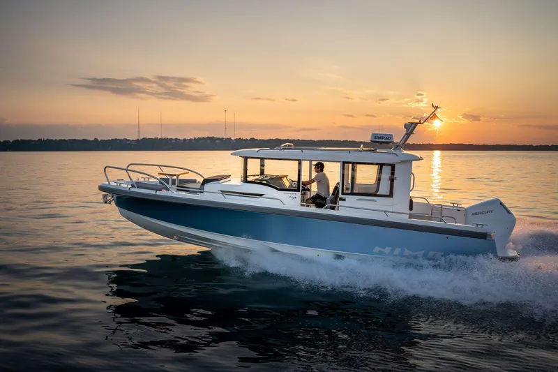 Introducing the stunning 2025 Nimbus C9 Pilothouse, a remarkable vessel that combines modern design with exceptional performance. With an overall length of 31 feet, this new boat boasts a sleek fiberglass hull, ensuring durability and stability on the water. Powered by a formidable Mercury Verado V10-350 XL outboard engine, it delivers an impressive 350 horsepower, allowing for exhilarating cruising speeds of up to 40 knots and a maximum hull speed of 50 knots. Designed for comfort and convenience, the Nimbus C9 accommodates up to 8 passengers, making it perfect for family outings or entertaining friends. The inclusion of an electric windlass enhances its functionality, ensuring effortless anchoring. With a well-appointed head onboard, this vessel is ready for extended adventures. Experience the perfect blend of luxury and performance with the Nimbus C9, where every journey becomes a memorable escape on the water.