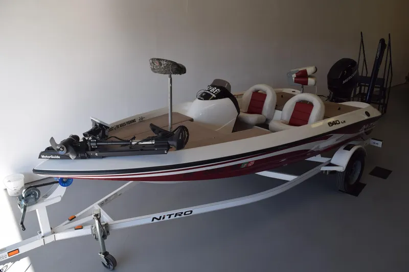 The NITRO 640 LX single console. At 16'4", it?s our most compact model?created by the same NITRO team who designs our tournament-style 9 Series boats. Its look and heritage is unmistakable?with the same value and quality you?d expect when it says NITRO on the hull. The NITRO 640 LX comes standard with a Mercury 60 ELPT 4-STR EFI outboard, aluminum prop, sleek console, plenty of storage (bow, aft, and underseat), 12-volt MotorGuide foot-controlled trolling motor and aft 28-gallon aerated divided livewell with timer, recirculation and pump-out. This high-value package includes our NITRO color-coordinated trailer with GalvaShield frame protection and EZ lube hubs.