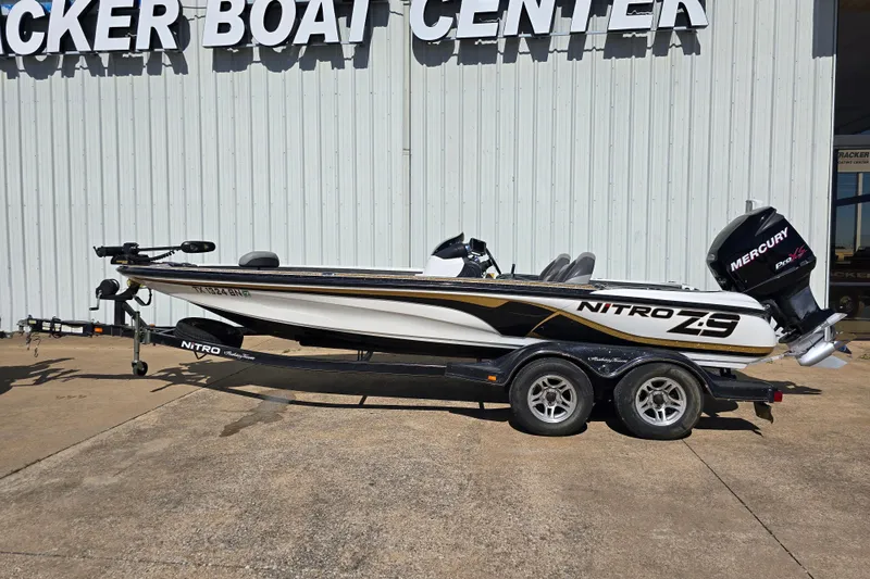 Get ready to unleash your angling potential. Because at a solid and stable 20-feet, 9-inches (6.32 m) long and 8-feet (2.44 m) wide, the NITRO Z-9 bass boat is more than ready to take your fishing to the max. With huge casting decks fore and aft, it boasts a ton of space to cast and maneuver, as well as all the features tournament anglers need to win.There are massive storage areas throughout for all your gear, including under-lid lure holders and organizers. A powerful 80-pound thrust Minn Kota Terrova trolling motor with Spot-Lock and high-definition Lowrance HDS 9 fish finder will help you hone in on your quarry. It even comes with a color-matched trailer and high-powered Mercury outboard. When you're ready to unlock your fishing potential, your NITRO Z-9 is, too. Features: 10" (25.40 cm) jack plate & rigging tube Fold-down reboarding ladder Two 20-gal. (75.71 L) insulated, aerated Guardian aft livewells w/oxygen generators, recirculators, timers & pump-out systems Hydraulic tilt steering w/through-deck hose fittings Multifunction gauges w/chrome bezels, clock & oil reservoir, 2 rod lockers w/automatic lights & port organizers Bow bicycle seat & aft folding chair.