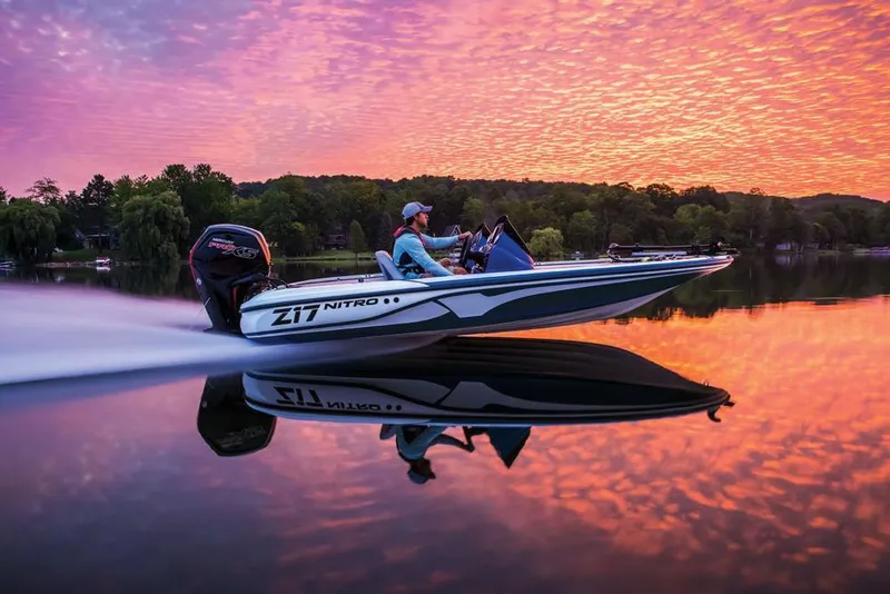 Our newest NITRO®, the amazing Z17 is a compact fiberglass bass boat that's easy to fish, easy to store and just right for anyone from the casual boater to the amateur tournament angler. Available early 2017. It shares many of the features of the larger Z Series boats, including our revolutionary NVT™ hull, a large, heavily insulated cooler, lockable rod storage, a Guardian™ livewell, roomy tackle storage and NASCAR®-inspired seating.