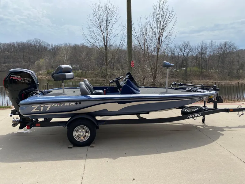 The NITRO® Z17 offers smooth, economical performance in a nimble size that's easy to tow, stow, and own. Reliable power from a FourStroke Mercury® outboard stands by to ramp up the fun with the jab of the throttle, while the NITRO® NVT™ hull offers quick planing and acceleration with on-rails handling at speed. The wide beam offers room for multiple anglers, stability in all conditions, and a world of storage beneath the decks. Lockable rod lockers carry sticks up to 7'6", while dedicated tackle stows in the rear deck keep boxes organized, dry, and readily accessible. The helm features a standard Lowrance® fishfinder, a full gauge set, and reliable switching for maximum convenience. Underneath the Z17 is a custom-fitted trailer made just for the hull it's carrying that promises years of smooth and hassle-free trailering. The Z17 is the perfect value- and feature-packed package that won't break the bank, but help you put checks in it.