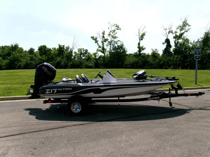 The NITRO® Z17 offers smooth, economical performance in a nimble size that's easy to tow, stow, and own. Reliable power from a FourStroke Mercury® outboard stands by to ramp up the fun with the jab of the throttle, while the NITRO® NVT™ hull offers quick planing and acceleration with on-rails handling at speed. The wide beam offers room for multiple anglers, stability in all conditions, and a world of storage beneath the decks. Lockable rod lockers carry sticks up to 7'6", while dedicated tackle stows in the rear deck keep boxes organized, dry, and readily accessible. The helm features a standard Lowrance® fishfinder, a full gauge set, and reliable switching for maximum convenience. Underneath the Z17 is a custom-fitted trailer made just for the hull it's carrying that promises years of smooth and hassle-free trailering. The Z17 is the perfect value- and feature-packed package that won't break the bank, but help you put checks in it.