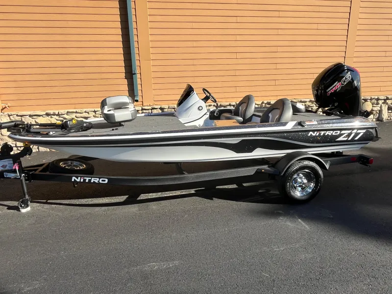 The NITRO® Z17 offers smooth, economical performance in a nimble size that's easy to tow, stow, and own. Reliable power from a FourStroke Mercury® outboard stands by to ramp up the fun with the jab of the throttle, while the NITRO® NVT™ hull offers quick planing and acceleration with on-rails handling at speed. The wide beam offers room for multiple anglers, stability in all conditions, and a world of storage beneath the decks. Lockable rod lockers carry sticks up to 7'6", while dedicated tackle stows in the rear deck keep boxes organized, dry, and readily accessible. The helm features a standard Lowrance® fishfinder, a full gauge set, and reliable switching for maximum convenience. Underneath the Z17 is a custom-fitted trailer made just for the hull it's carrying that promises years of smooth and hassle-free trailering. The Z17 is the perfect value- and feature-packed package that won't break the bank, but help you put checks in it.