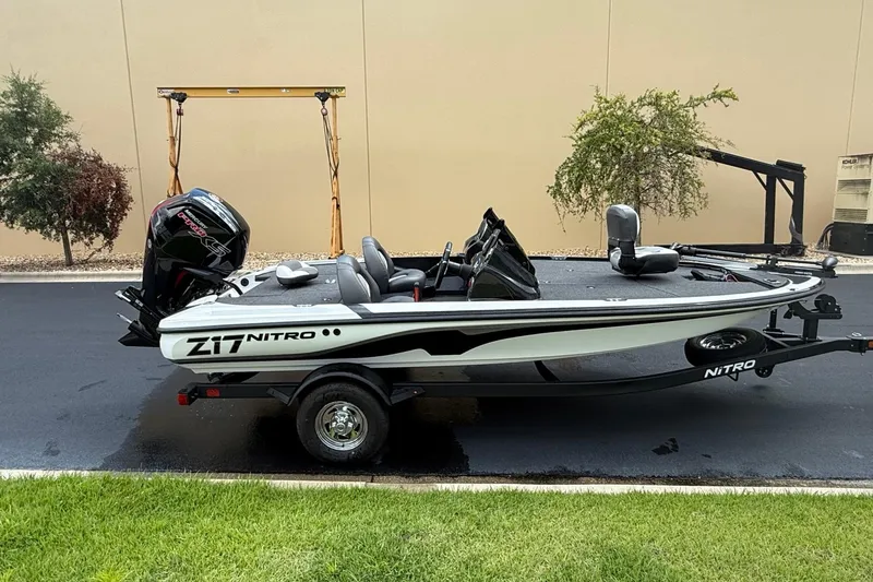 The NITRO® Z17 offers smooth, economical performance in a nimble size that's easy to tow, stow, and own. Reliable power from a FourStroke Mercury® outboard stands by to ramp up the fun with the jab of the throttle, while the NITRO® NVT™ hull offers quick planing and acceleration with on-rails handling at speed. The wide beam offers room for multiple anglers, stability in all conditions, and a world of storage beneath the decks. Lockable rod lockers carry sticks up to 7'6", while dedicated tackle stows in the rear deck keep boxes organized, dry, and readily accessible. The helm features a standard Lowrance® fishfinder, a full gauge set, and reliable switching for maximum convenience. Underneath the Z17 is a custom-fitted trailer made just for the hull it's carrying that promises years of smooth and hassle-free trailering. The Z17 is the perfect value- and feature-packed package that won't break the bank, but help you put checks in it.