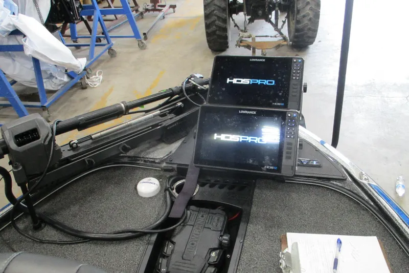 - Angled bow panel w/trolling motor receptacle, anchor/light switch, trim switch & capability to flush mount most 12" (30.5 cm) fishfinders