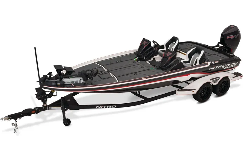 Sports car performance, sedan comfort, SUV utility. The NITRO® Z21 XL combines these and more into the ultimate no-holds-barred bassin' rig. In the 21-foot class, the Z21 XL stands alone in performance-driven fishability with a colossal casting deck, pro-driven layout, and all the fishing features demanded by the top pros. Up front, an extra-wide bow gives you more stability on the trolling motor, and you'll be at your best all day thanks to the padded front deck. The colossal center stows carry both rods and tackle in organized security and are accessible at a moment's notice. All-new slam latches mean no more twist latches to trip over when left undone. Underfoot in the cockpit is an EVA foam pad for fast-drying non-skid grip, while the helm is an angler's dream, carrying electronics up to 16", a full gauge set, and the NITRO® Z-TOUCH™ touchscreen control center. Z-CORE™ suspension seating saves your back in chop and keeps you centered in high-performance turns thanks to the side-bolstered design. The running surface of the Z21 XL features NVT™ technology for instant planing, nimble handling, and superior speeds with a full load. Our engineers focused on real-world tournament conditions to deliver a better experience with a full load, fishing partner, full livewells, and a full complement of gear to give you the pro-grade experience you've been looking for.
