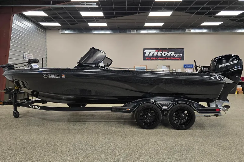 2022 Nitro ZV21 Black Out edition with fiberglass fenders and black out rims. 400 Mercury L6 Verado (Smart Craft gauge installed), 15hp Mercury Pro-Kicker tiller. Tinted windshield, boarding ladder attached to the trailer. Boat is in great condition and features Bobs Machine Jack Plate, tilt/trim and jack plate control paddles at the steering wheel. Nitro Z Touch digital boat control screen, AM/FM Bluetooth radio, Lenco Trim tabs, Troll Master for kicker motor, Lowrance HDS 12 Live and the dash, 9" Lowrance Elite FS at the bow, with wiring in place to add more Lowrance units if wanted. Lowrance Point1 GPS receiver and NEMA network installed. 72" Minnkota Terrova, 4 folding seats, and travel cover included. Boat was just professionally serviced and detailed.