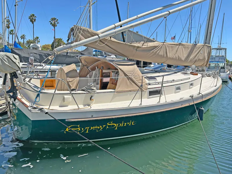 "Gypsy Spirt" is a traditional 2 cabin, single head layout. Entering a centerline companionway, you find yourself in a remarkably spacious and well vented interior. Full "U" shape galley to port companionway. Adjacent to starboard is the Nav Station and access to a large quarter berth. Moving forward to a very comfortable "U" shaped dinette with a "love" seat to starboard. Forward is the master suite, with a double "pullman" berth, hanging locker and private access to a full head with separate shower area. The head also can be access from the salon area.