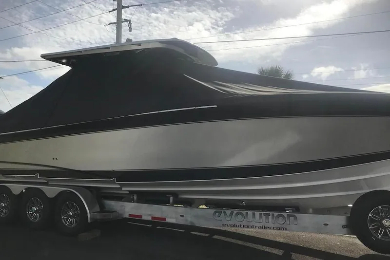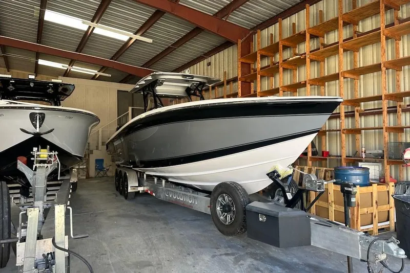 The boat has spent its entire life in indoor storage. It comes with complete cover including engines. Service records available upon request. Yours for only $305,000 USD including custom aluminum Evolution trailer.