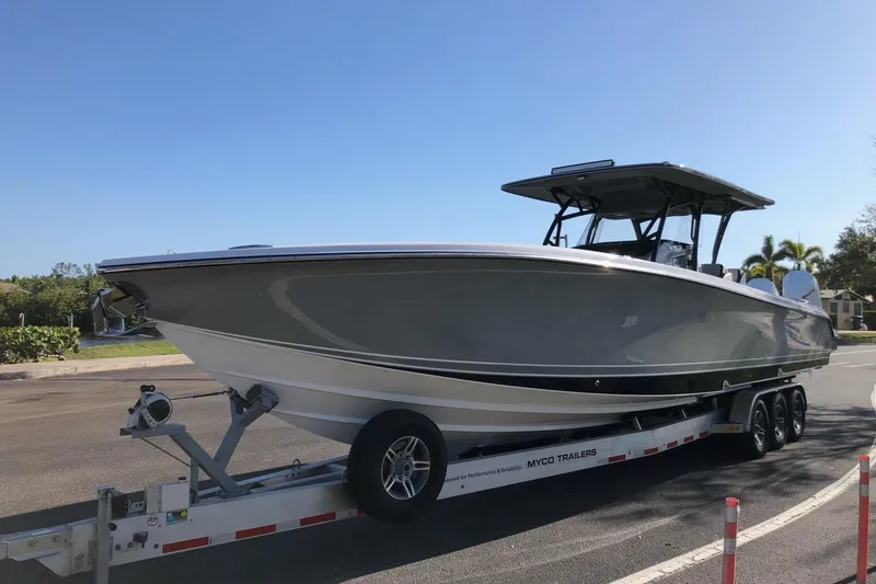 Center Console, Helm Seat, 2nd Row Seat Painted - Chalk Grey Radar and Antennas in Black