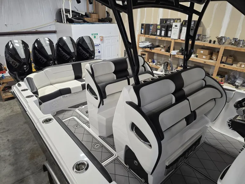 , Motivated sellerIncludes trailer Super clean and nicely equipped 2022 Nor-Tech 390 Sport Included in this 390 Sport Quad Mercury 450 Racing engines with 380 hours Zero Effort Controls Fresh Water Flush System for Quads Dual 22" Garmin MFD 30" Black Oak LED Light Bar Lumishore Underwater color changing lights Garmin XHD 18 Radar Garmin VHF Garmin XM Radio and Weather Fish Package Addition 85 gallon fuel tank Bow Thruster2nd Row Helm SeatForward seating backrestsDiamond Sea Dek Rod Holders on T Top Club Sport Bench Seating Custom hull side paint Shore Power Connection with outlet in CabinBow and Stern SunshadesSport Trail Aluminum trailer with new G rated tires